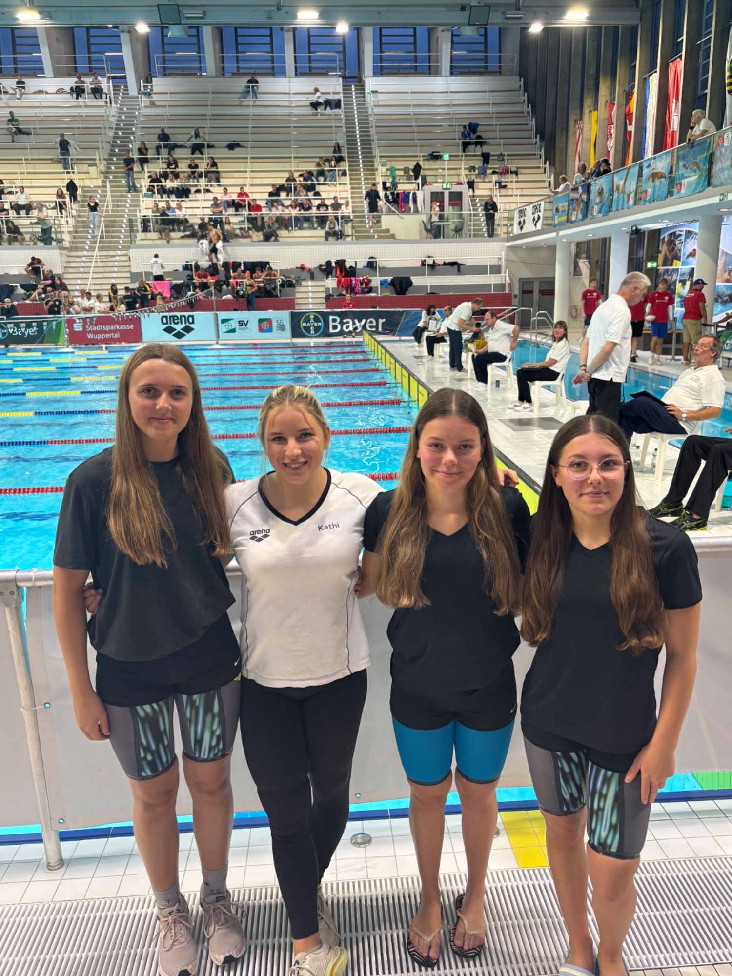 Auch unser weibliches Staffelteam (Paulina und Hanna Maringer, 2010 bzw. 2008, sowie Vanessa und Katharina) zeigte eine starke neue Bestleistung und schwamm sich in 1:56,56 Minuten auf Platz 1 der Vereinsbestenliste. Besonders erwähnenswert ist, dass Paulina als Startschwimmerin zum ersten Mal in einer Zeit von unter 30 Sekunden anschlug.